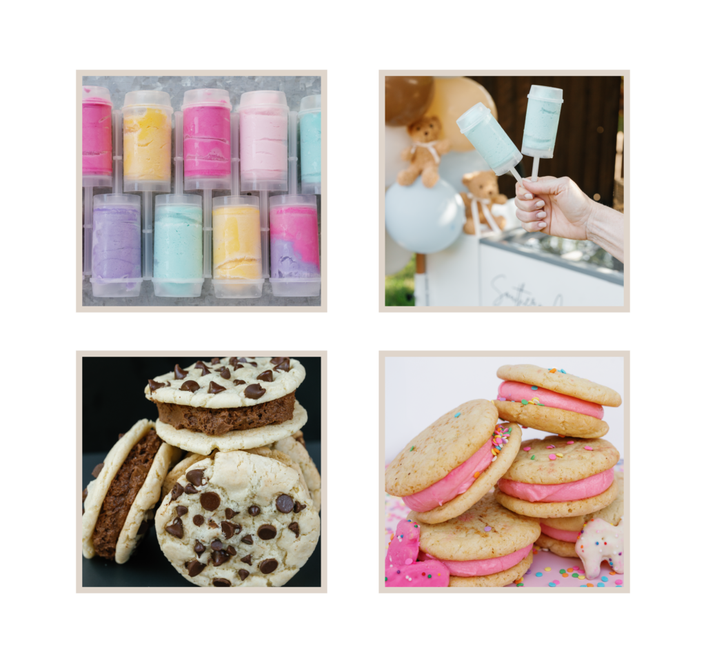 Searching for a delightful and unique addition to your next event? Our charming bicycle is perfect for photo ops and can cater to gatherings of all sizes, from birthdays to weddings and corporate parties. For more intimate events, we offer drop-off options featuring ice cream sandwiches stacked into a tower or special tags as favors. Let Southern Creamery make your celebration truly unforgettable!